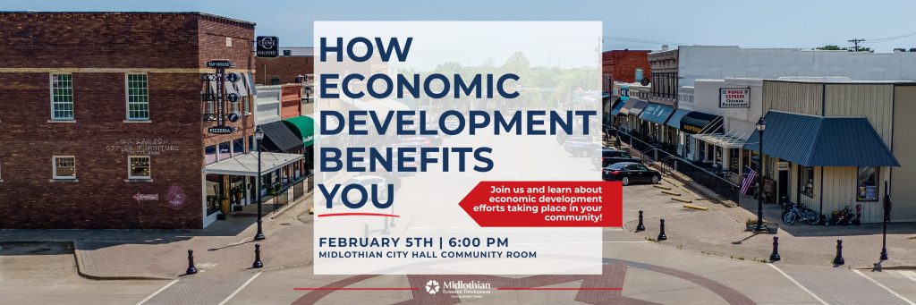 How Economic Development Benefits You Midlothian, TX – Midlothian residents are invited to attend “How Economic Development Benefits You,” an informative and interactive forum hosted by Midlothian Economic Development (MED) on Thursday, February 5, 2026, 6:00 PM at the Midlothian City Hall Community Room. This free community event is designed to help residents understand […]